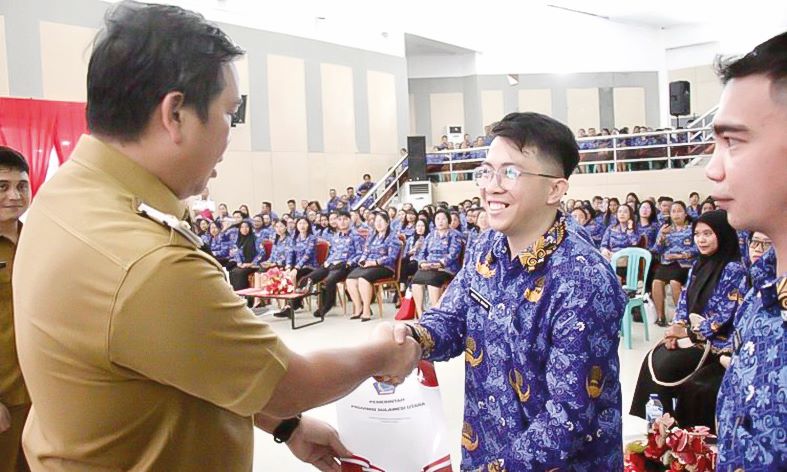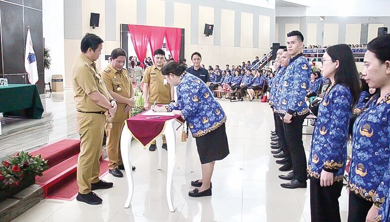 MANADO, hckutim.com – Raut wajah gembira terpancar dari 1.458 PPPK saat resmi menerima SK Gubernur yang diserahkan Wakil Gubernur Sulawesi Utara, Drs Steven Kandouw, kemarin.