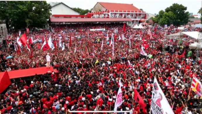 Terpantau, puluhan ribu warga pendukung Ganjar-Mahfud telah memenuhi lapangan Sario.