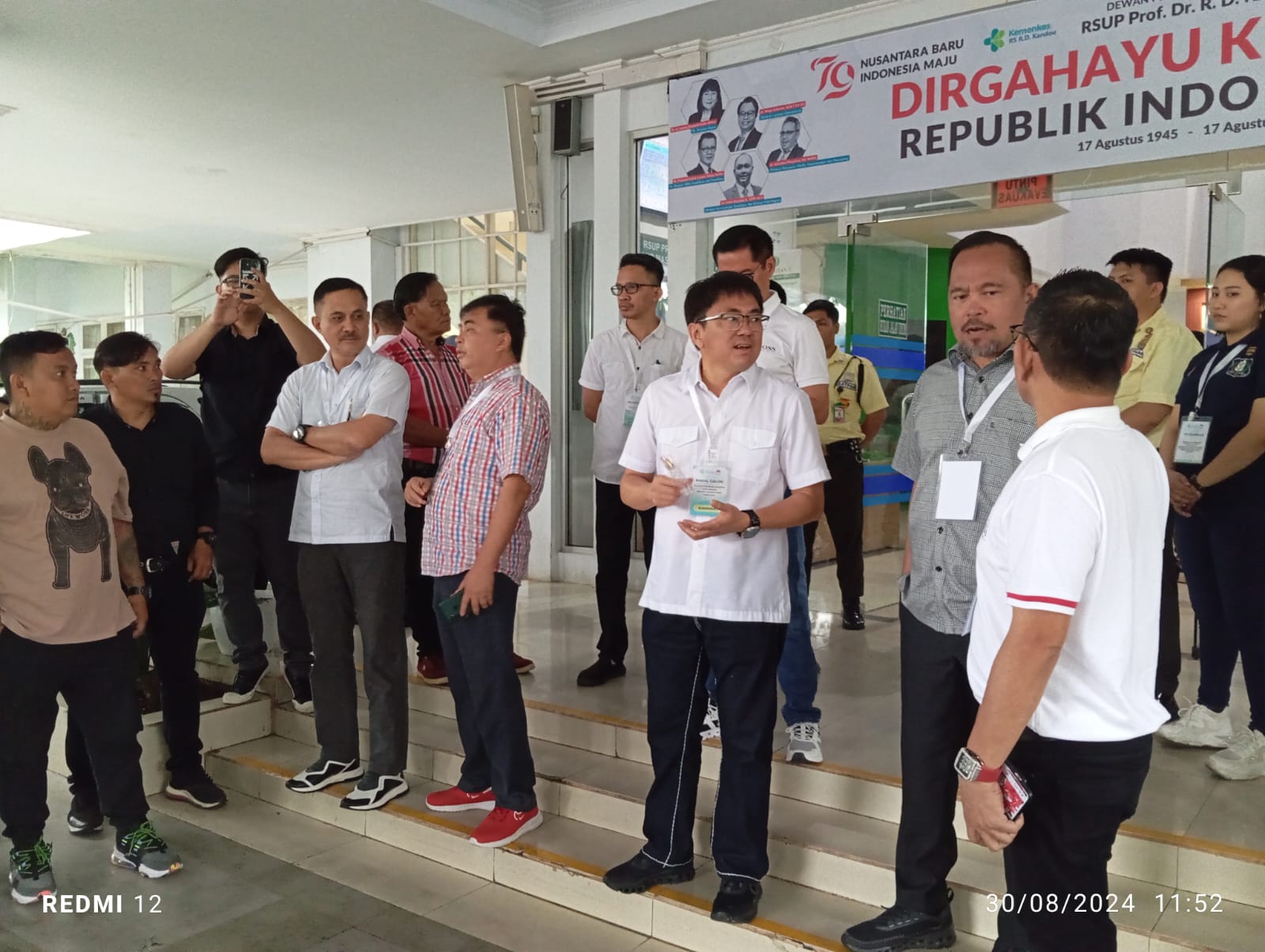 Calon Wakil Gubernur Sulut Denny Tuejeh saat berada di Lobby RS.Kandou Malalayang Manado. Terlihat juga AARS berbincang-bincang disitu. (Foto: kru hckutim.com)